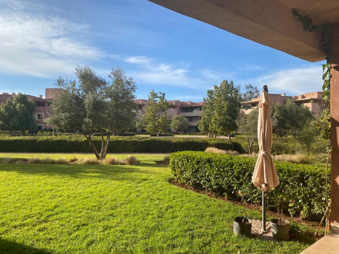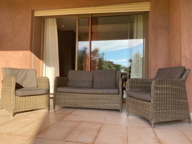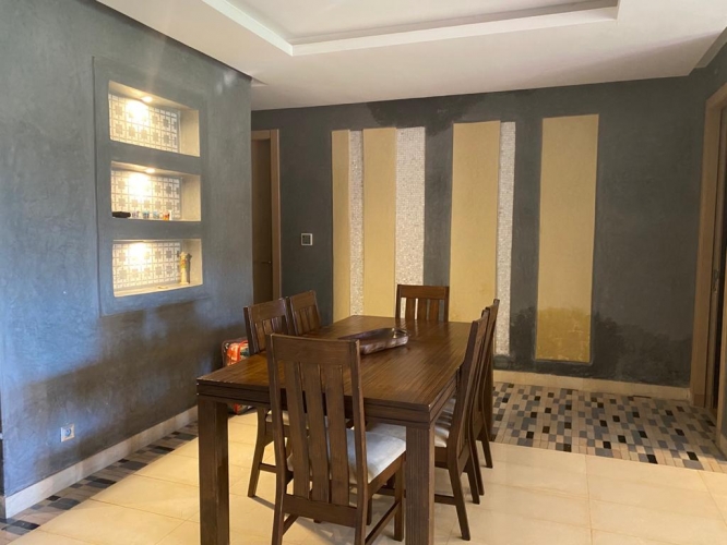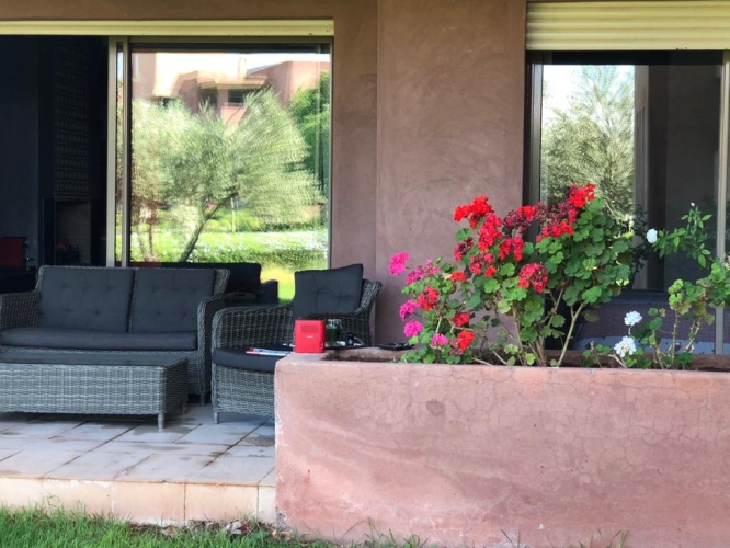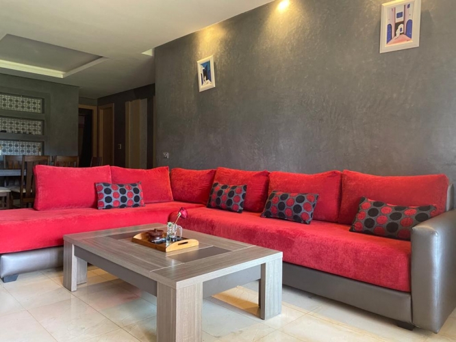 Bien situé dans un ressort golfique,cette bel appartement meublé de 128 m² a 5 min du centre ville marrakech est un meilleur choix pour un séjour loin du stress de la vie quotidienne